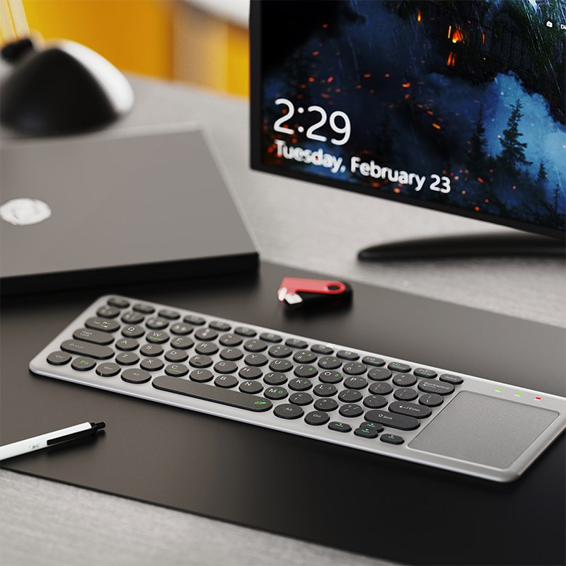 - Wireless keyboard with a spacious, highly responsive touchpad for easy control on TV-connected computers.
