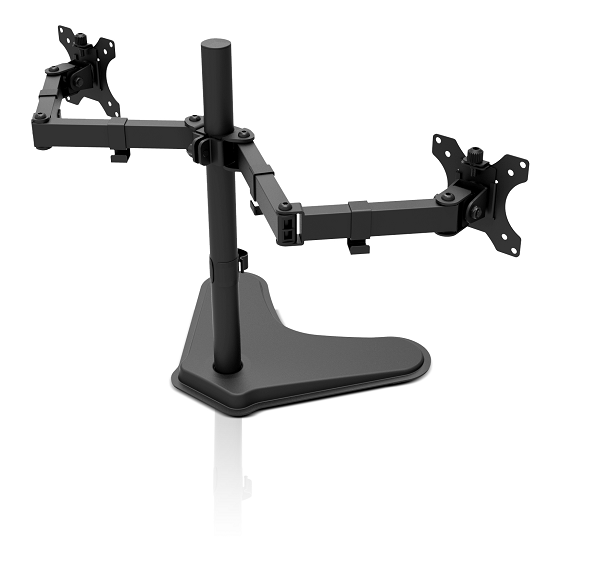 - Dual monitor mount featuring a heavy-duty desktop base
