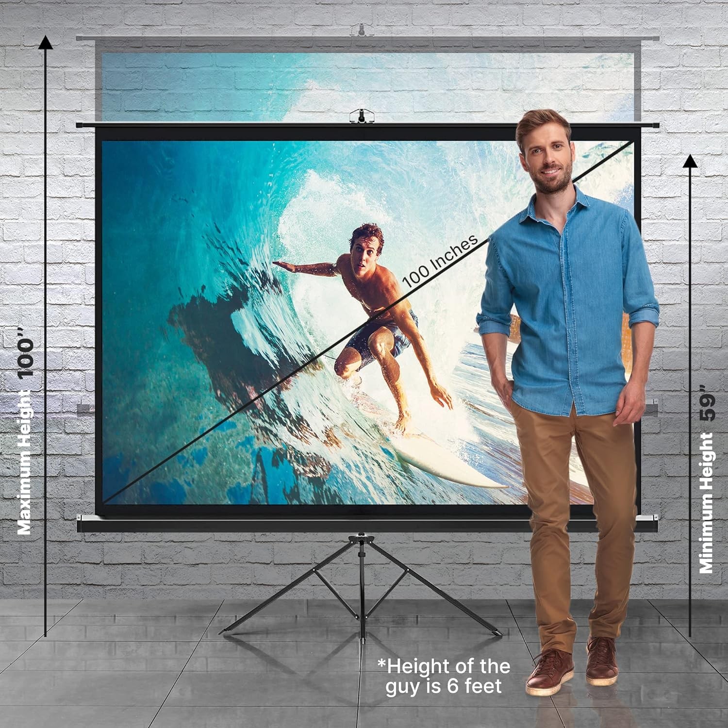 - Vivid And Clear Image: The indoor projector screen uses durable and thick materials with a full black backing to provide clearer images, vibrant colors, and no color cast whether viewing movies indoors or outdoors. It comes with an adjustable stand that extends from 50” - 83.46”