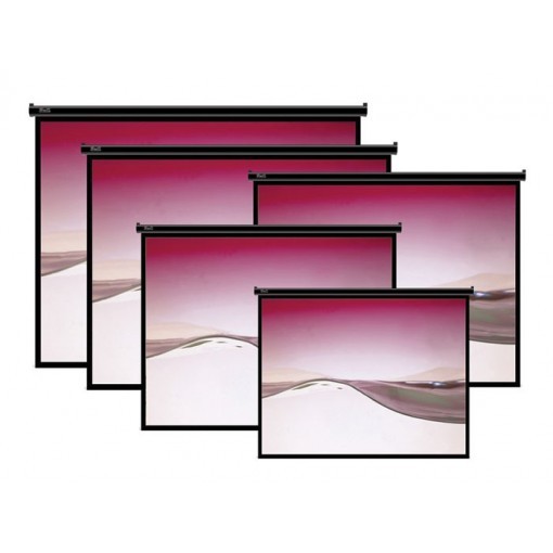 This projection screen is very easy to use. Just pull it down and when you are done, roll it back up and it will lock automatically! Its white matte finish eliminates both glare and reflections. It may be mounted on the wall or on the ceiling.