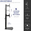 • Height Adjustment: Features 9 locking height settings from 12.5” to 19.5". Adjust by pulling up on the pole until it clicks into the desired setting. To lower back to starting position, raise the pole all the way past the 9th position and then release