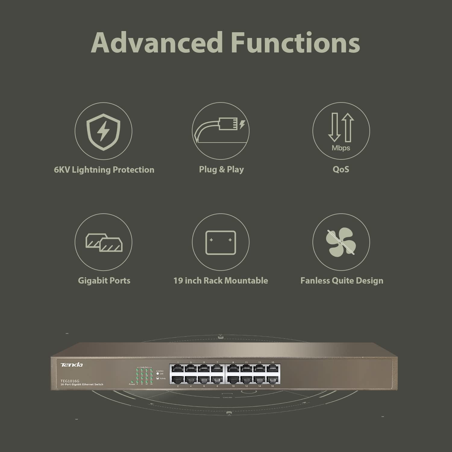 - 【???????????????? & ????????????????】Enjoy quick and easy setup with no configuration or software required, TEG1016G is your perfect 16 port Gigabit switch choice