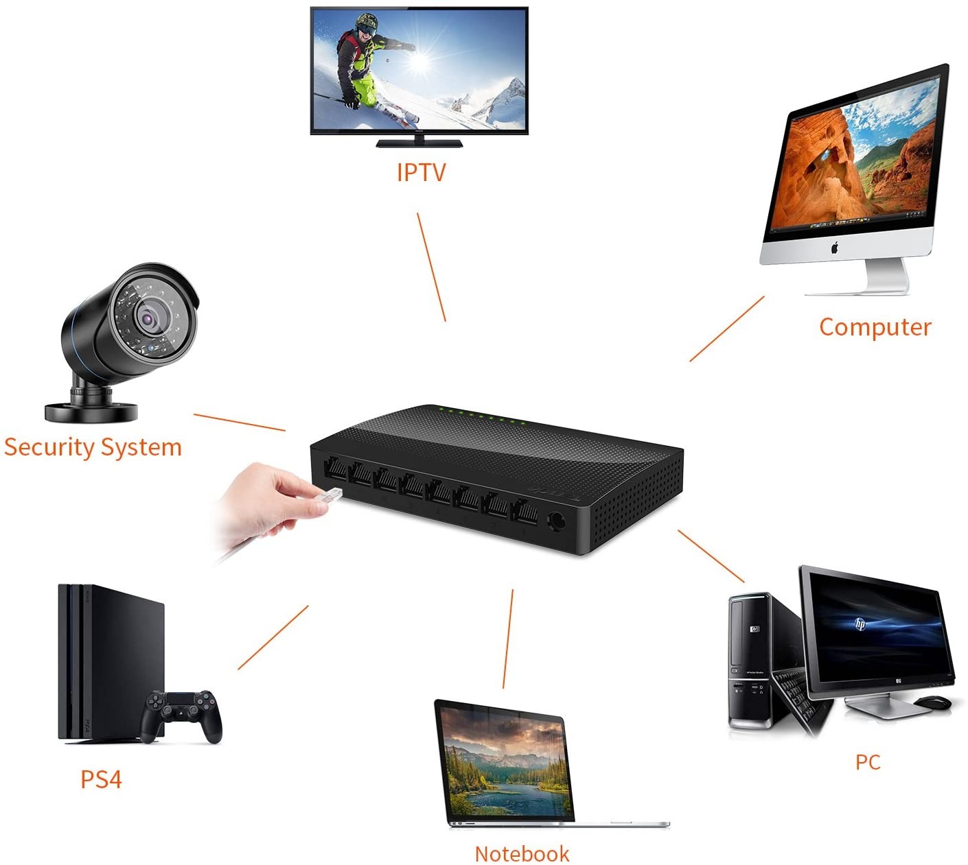 Whether you have a small or home business, want the ultimate surfing fun or look for an innovative way to add more Ethernet ports to your network, Tenda S108 can satisfy all your needs to expand your network with easy. What's more, it can be placed anywhere.