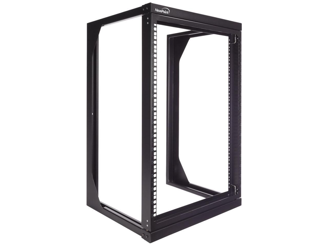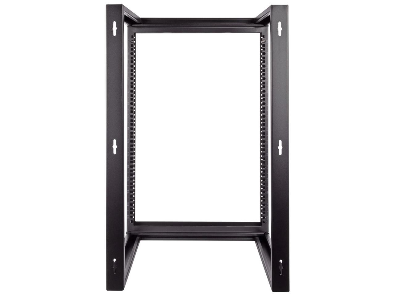 Use space efficiently with this NavePoint 15U swing gate wall-mounted rack for your standard 19" servers and AV and networking equipment. The dual-hinged front swing gate easily opens to a 180-degree angle for easy rear cable access from either side. Spring-load pivot pins provide for either left or right hinging, so you can choose what works for your build. Open design allows airflow and great overall access for equipment installation, servicing, and cable management.